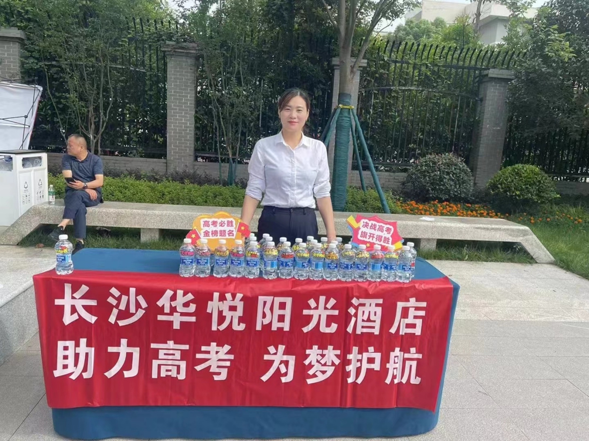 華悅陽光酒店一直以來都秉持著“以人為本,服務(wù)至上”的理念,致力于為每一位客人提供溫馨舒適的住宿體驗(yàn)。在這個(gè)特殊的季節(jié),華悅陽光酒店更是展現(xiàn)出了對社會(huì)的深深關(guān)懷與責(zé)任,在周南中學(xué)考場外設(shè)立了助力高考點(diǎn),用實(shí)際行動(dòng)傳遞著對考生的深切關(guān)懷。酒店工作人員不僅準(zhǔn)備了考試文具包和清涼的礦泉水,更以溫暖的笑容和鼓勵(lì)的話語,為考生們營造了輕松愉快的考前氛圍,幫助他們以最佳狀態(tài)迎接挑戰(zhàn)。
